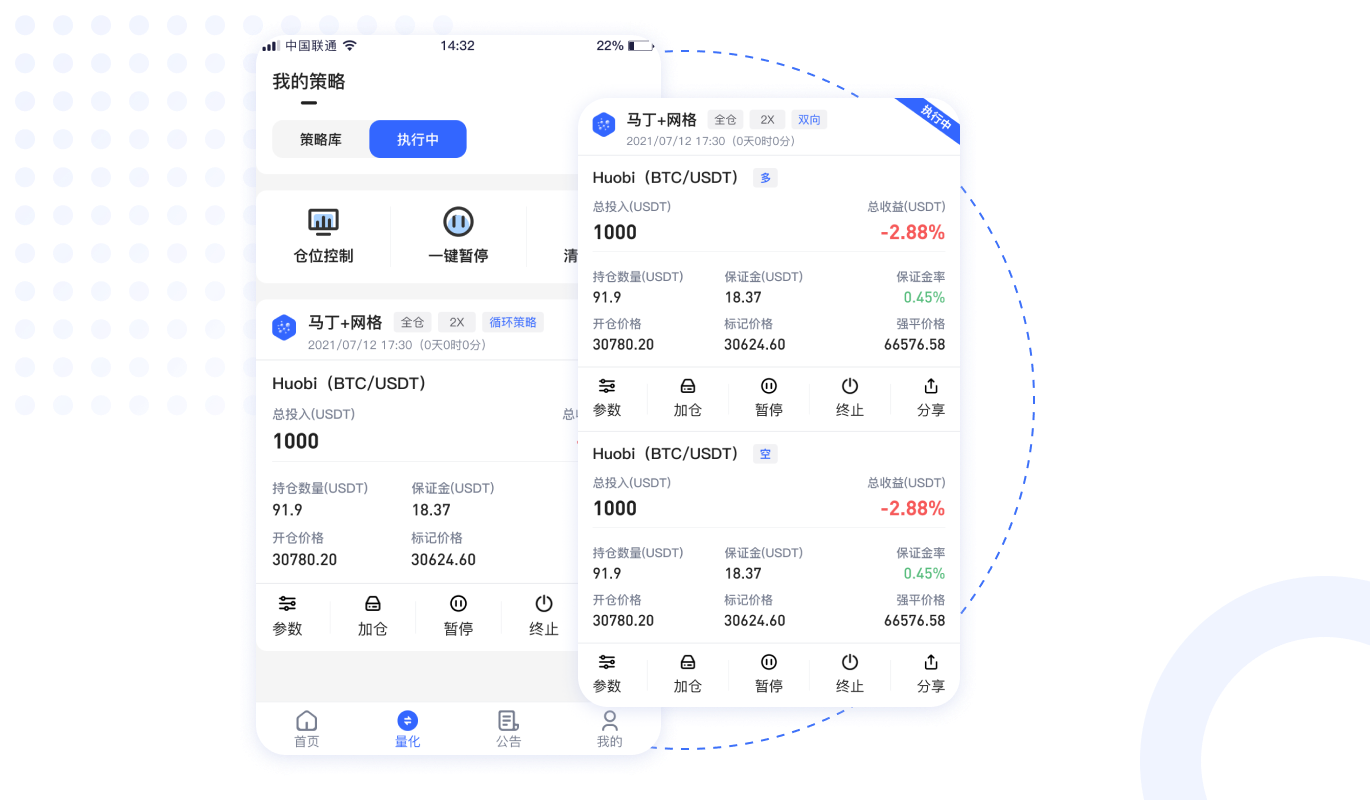 馬丁倍投+網(wǎng)格混合策略、趨勢補倉、尾單補倉、風險控制、防瀑布機制、螺旋式補倉、一鍵補倉,首單加倍。
