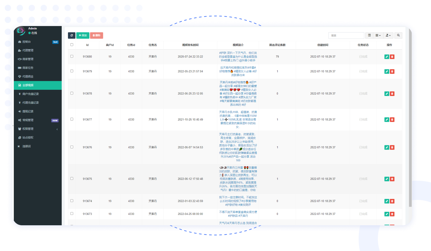 直接截取同行視頻下方評論區(qū)域相應(yīng)評論內(nèi)容,采用“觸發(fā)”預置關(guān)鍵詞技術(shù),鎖定意向客戶,并指定(用戶)評論者的聯(lián)系方式詳情,輸出線索表單,助力企業(yè)獲客、拓客。